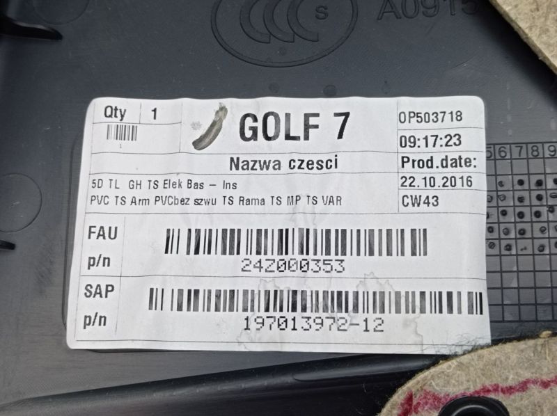 Türverkleidung Türpappe links hinten VW GOLF 7 VII VARIANT (BA5, BV5) 2.0 TDI